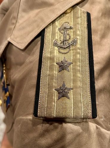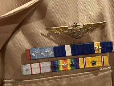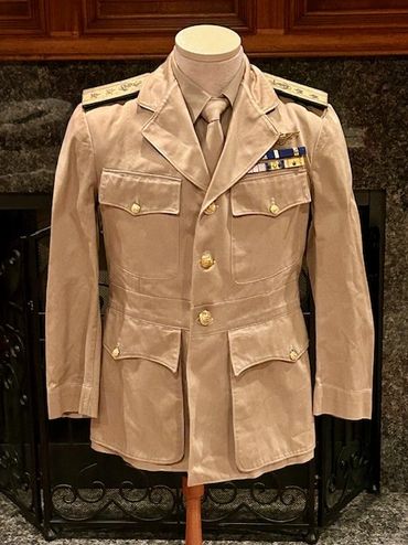 Four pocket service coat, with orginal stars and SSI (ribbon bar added) Aquired from the family a Theater made 12th Army Group Flag and Allen's stars and auto flag.